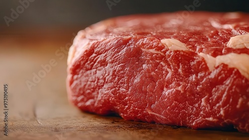 Closeup of marbling on a dryaged steak before grilling, showcasing the rich textures and layers of fat