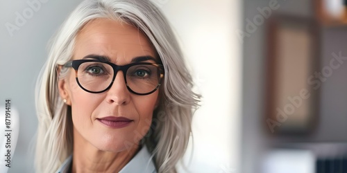 Closeup of mature professional woman in modern office exuding poise and professionalism. Concept Closeup Portraits, Mature Woman, Professional Office, Poised Expression