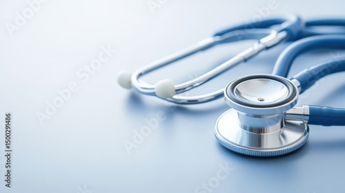 Close-Up of Medical Stethoscope on Light Blue Background in Clean Setting