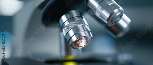 Close-up of microscope and scientific lab equipment,