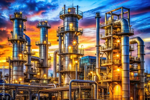 Close-up of Oil Extraction Process at Refinery, Industrial Machinery and Raw Material Flow, Detailed Textures and Metallic Surfaces, Energy Production, Industry Focus, Oil Refining Technology