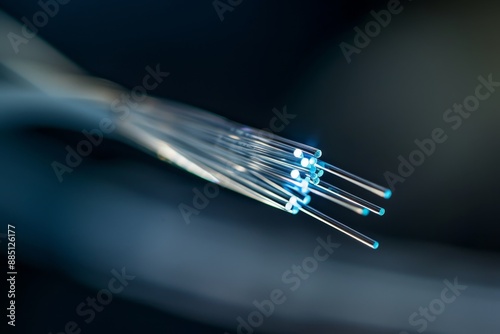 Close-up of optical fiber cables for communication and data transmission