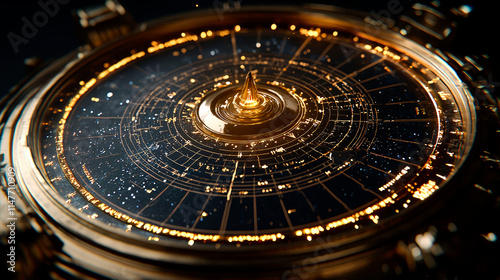 Close-up of ornate celestial compass.