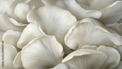 Close-Up of Oyster Mushrooms: A Textural Symphony in Off-White