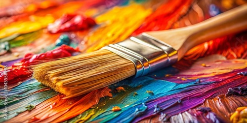 Close-Up of Paintbrush and Palette with Vibrant Oil Paints for Artistic Inspiration