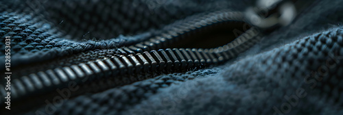 Close-Up of Partially Unfastened Zipper on Dark Fabric - Transition and Revelation