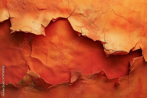 Close-up of peeling orange paint texture