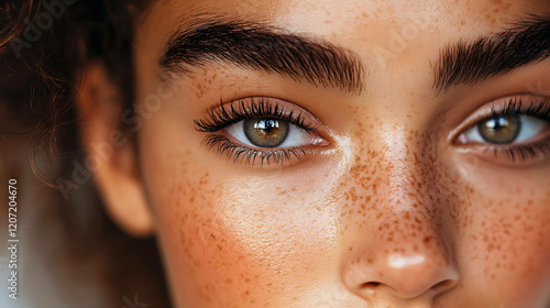 Close-up of perfectly arched brows with a brow pencil in focus