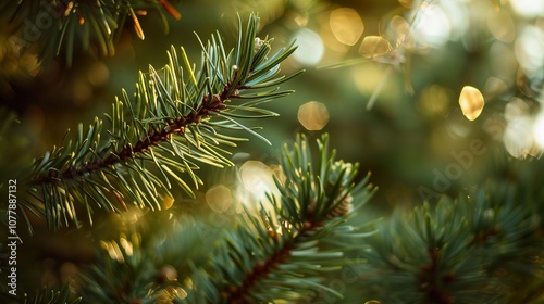 Close-Up of Pine Needles with Sunlight Bokeh