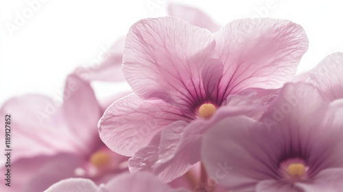 close-up of pink flowers against a white background