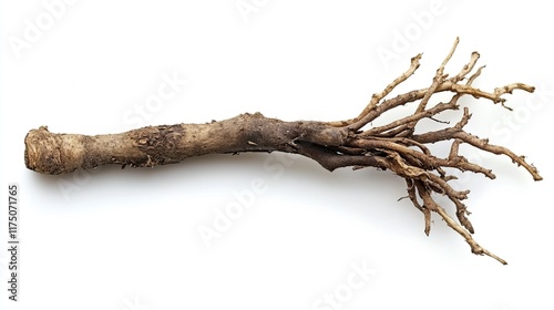 Close-up of plant roots against white background, useful for botany or gardening websites.
