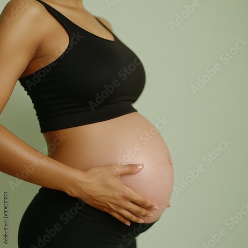 Close-Up of Pregnant Woman's Belly in Sporty Outfit