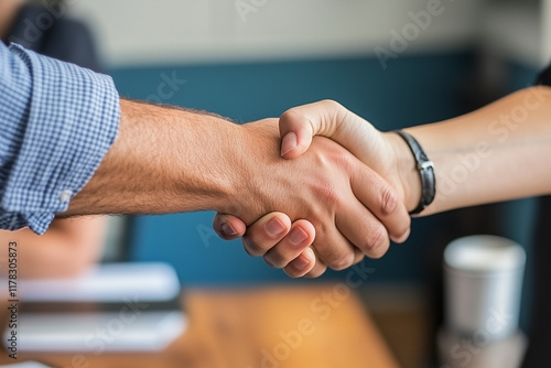 Closeup of Professional Handshake in Office Showing Business Deal and Corporate Partnership