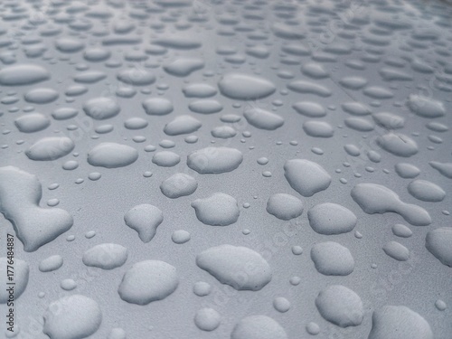 Close-up of Rain Water Droplets on Gray Hydrophobic Surface Texture