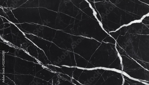 Close-up of raw marble with elegant white veins on deep black background, polished