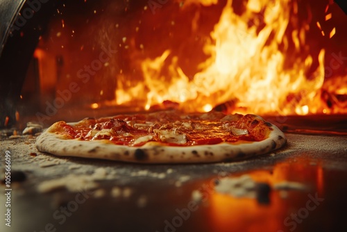Close-Up of Real Neapolitan Pizza in a Charred Pizza Oven