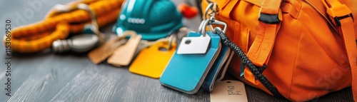Close-up of rescue team identification tags showcasing details and textures in emergency response gear.
