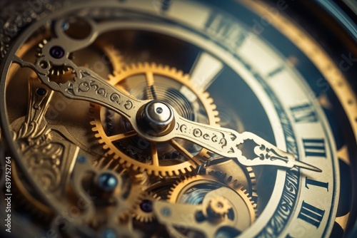Closeup of retro mechanical old clockwork macro shots, Generative AI