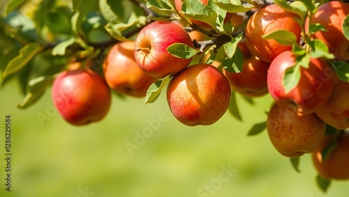 Close-Up of Ripe Apples Hanging from a Tree Branch