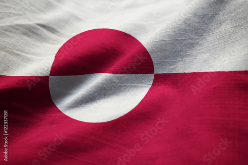 Closeup of Ruffled Greenland Flag, Greenland Flag Blowing in Win