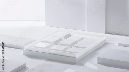 Close-up of semiconductor chip with detailed electronic components and circuits on clean white background, ideal for tech and engineering projects.