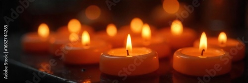 Close-up of several flickering candle flames, warm yellow light illuminating the wax, creating a cozy and intimate atmosphere Perfect for holiday, relaxation, or spiritual themes , yellow, winter