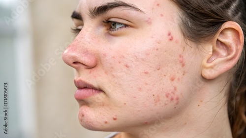 Close-Up of Severe Facial Acne and Pimples with Redness – Skincare and Dermatology Concept