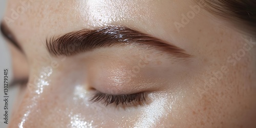 Close-up of Shiny Skin and Well-Groomed Eyebrows on a Woman