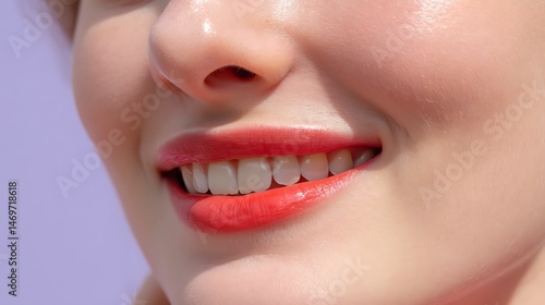 Close-Up of Smiling Woman with Glossy Lips and Radiant Skin