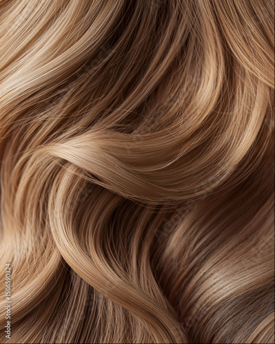 Closeup of smooth blonde wavy hair strands showing natural shine and soft texture in high detail