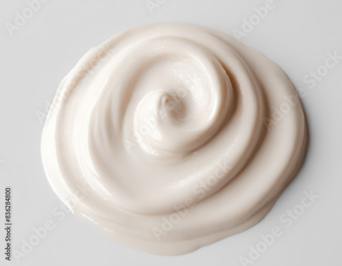 Close-up of Smooth White Cream Smear, cosmetic smears of creamy texture on a white background