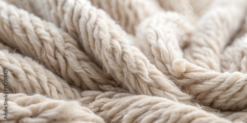 Close-Up of Soft Beige Wool Yarn, Texture, Soft, Natural Fiber. Wool, Yarn, Fiber