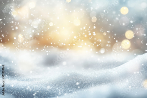 Close-up of sparkling snow crystals glistening under the sunlight, evoking the beauty of winter.