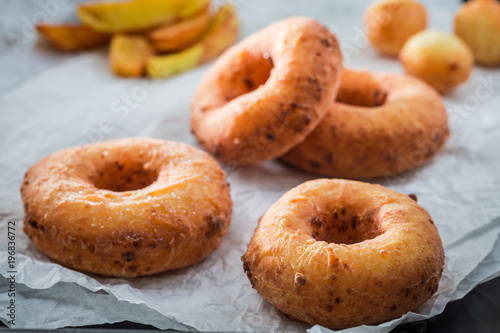 Closeup of sweet homemade donuts ready to eat