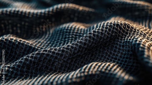 Close-up of tightly woven black fabric showcasing intricate thread patterns and soft shadows for a rich, textured appearance.
