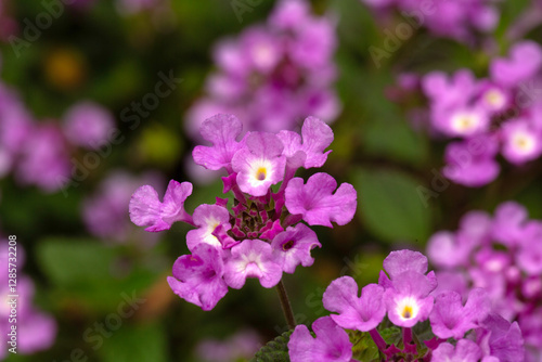 Closeup of trailing Lantana (Lantana montevidensis) in a garden in Madeira
