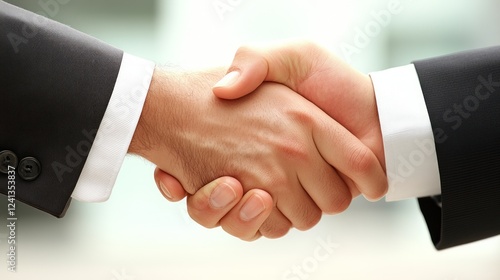 Close-up of two businessmen shaking hands, symbolizing agreement and partnership.