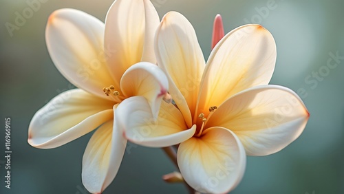 Closeup of Two Delicate Pastel Plumeria Flowers