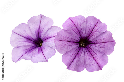 Closeup of Two Delicate Purple Petunia Flowers Isolated on Gray Background transparent background Generative AI
