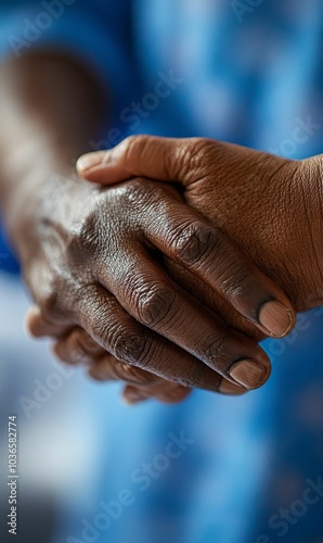 Close-up of two hands clasped together.