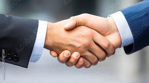 Closeup of two hands performing a firm handshake symbolizing partnership and business agreement : Generative AI