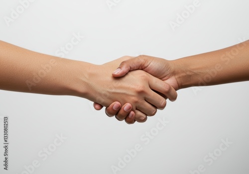 Close-up of two hands shaking in agreement on neutral background