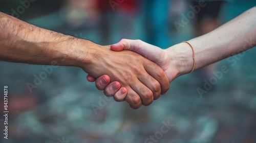 Close-up of two hands shaking, symbolizing agreement, partnership, and collaboration.