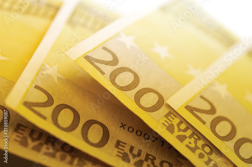 Close-up of two hundred Euro banknotes