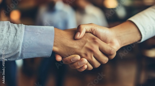 Close-Up of Two People Shaking Hands in a Professional Setting