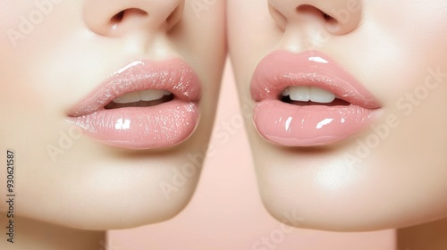 Close-up of two people with glossy pink lips reflecting beauty trends