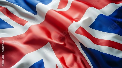 Closeup of United Kingdom Flag Waving with Vibrant Red White and Blue Patterns : Generative AI