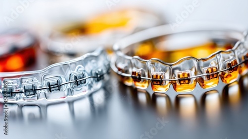 Close-up of Upper and Lower Clear Dental Aligners, Retainers, or Braces for Orthodontic Treatment, Isolated on White Surface