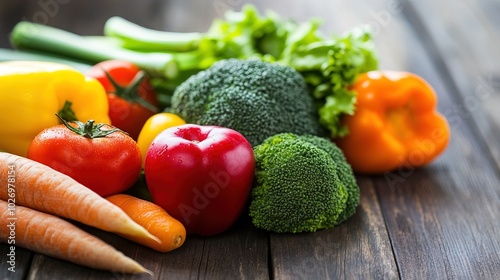 Close-up of vibrant fresh vegetables and fruits on wooden table, symbolizing healthy blood pressure foods, emphasizing natural nutrition and wellness.