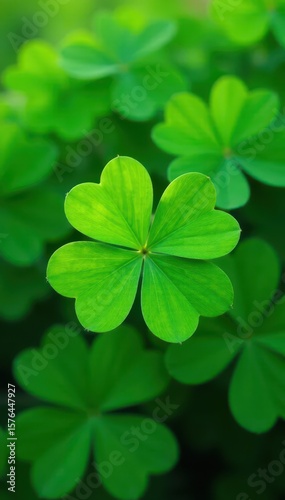 Close-up of vibrant green clover leaf background, four-leaf-clover, texture, plant